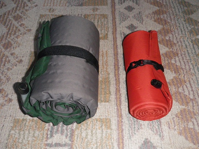 そんな中マットをダイエットすることにしました。いままでコールマンの180cmマットを使っていたんですが結構かさばります。そこでスノーピークのPADに変更することにしました。同じ180cmでも少し小さくなります。でも考えたら枕もあるし180cmもいらないんじゃないかと思うようになり思い切って120cmにしました。足元にはジャンハーかオーバーパンツを置けば足ります。