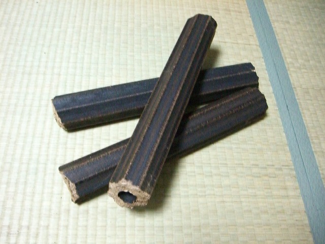 そんな中で「オガライト」なるものを発見しました。木材を製材した時に出る「おがくずを」圧縮した物です。使い勝手がいいようにちくわ状になっています。必要な大きさに手で簡単に折ることができます。これを炭にした「オガタン」というものも有ります。焼肉店などで使われているそうです。そういえば「牛角」で似たような隅を見たことがあります。
