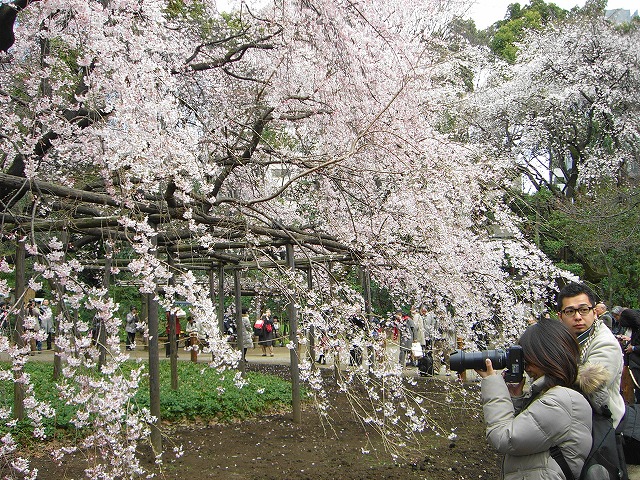 シダレザクラ(枝垂桜)を見てきました。ここ六義園は駒込駅前にあります。