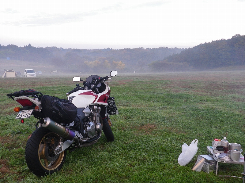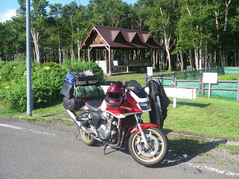 さて、北海道最後のキャンプ場の朝は台風一過の晴天です