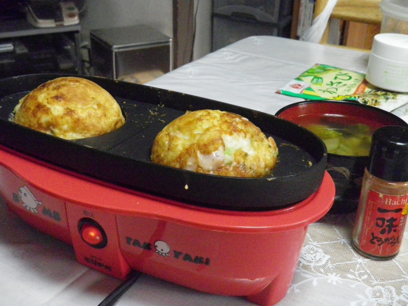 とそんな時、すごいものを発見!早速注文しました。直径8cm!でかすぎ!通常のたこ焼きの倍もあるじゃないか。直径が倍と言う事は容積は8倍。巨大だ。待つこと2日間。たこ焼き器が自宅に届いた。早速作ってみるするた。
