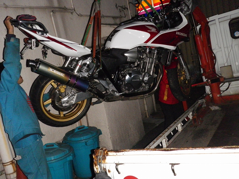 軽く対応されてしまいました。乾燥でも240kgのCBをどうやって移動するのか興味ありましたね