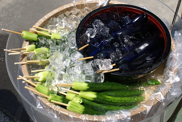 通りでおいしそうなきゅうりとなすの漬物を見つけた。柴又の帝釈天や浅草でよく見かける。