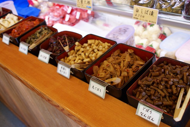 私の好きな漬物です。しかもこの店の商品はすべて試食できます。