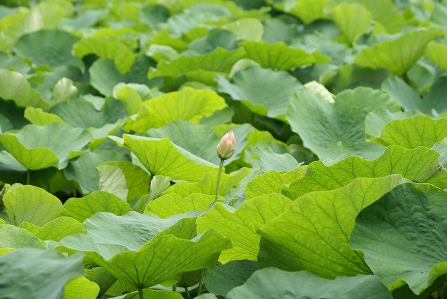 確か太鼓橋を渡ってすぐ左右に源平池があったはず。そこは上野不忍池のように蓮が一面に