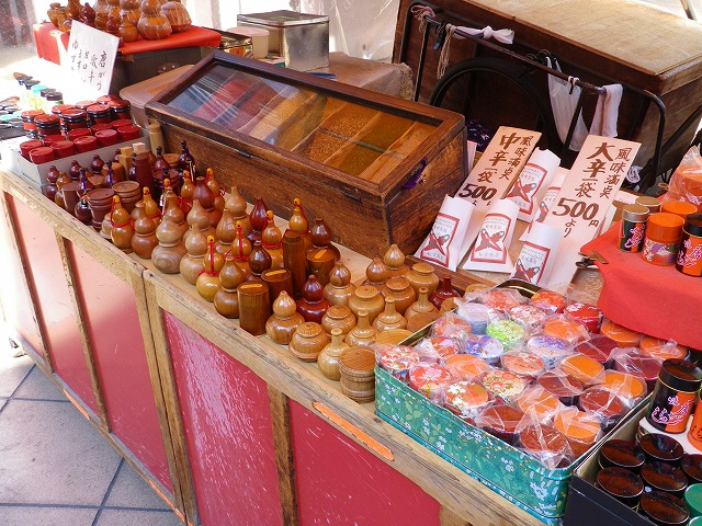 ここは毎日が縁日のようにいつも屋台がたくさんあります。定番は寺入り口にある唐辛子の屋台で注文によってどんな配合にも作ってくれます。七味どころか二十味唐辛子も作ってくれるそうです。でも辛党の私には一味だけで十分です。