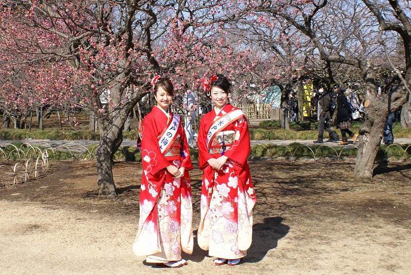 「水戸の梅むすめ」のお嬢さんの周りはカメラマンでいっぱいでした。